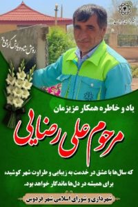 پیام تسلیت شورای اسلامی شهر و شهرستان فردوس به مناسبت درگذشت نیروی خدوم و با اخلاص شهرداری فردوس مرحوم علی رضایی
